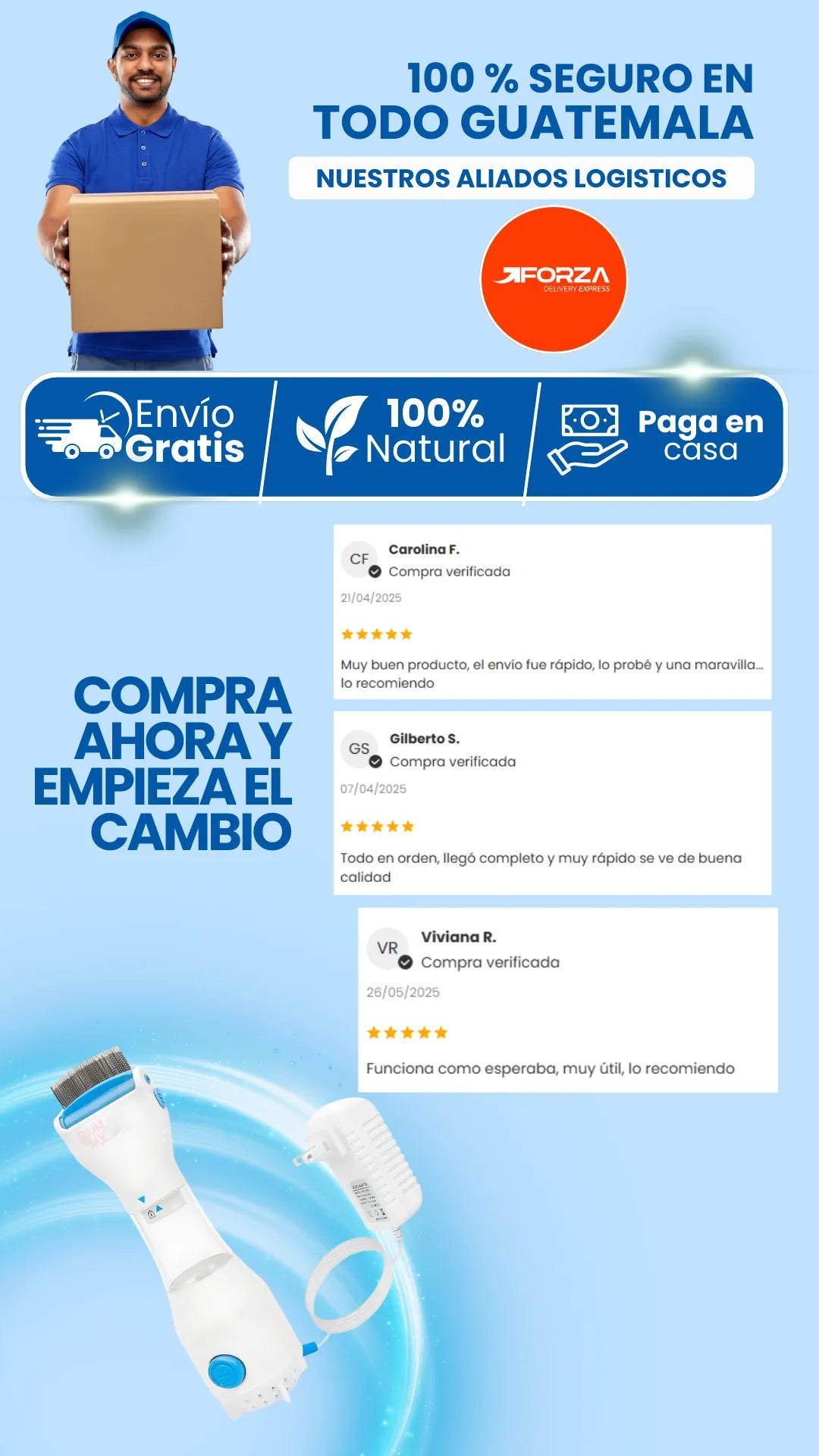 En una sola pasada vi los piojos y liendres salir! Muy fácil de usar y sin químicos.