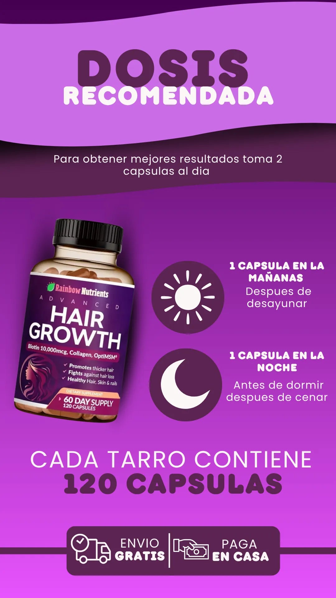 Mezcla 1 cucharada al día en agua, jugo, café o tu bebida favorita. Puedes tomarlo en cualquier momento del día, aunque muchos prefieren hacerlo en la mañana.