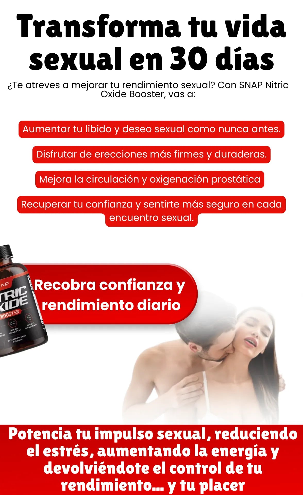 Si la fatiga, la falta de deseo o las dificultades sexuales están afectando tu vida, es hora de hacer algo al respecto. SNAP Nitric Oxide Booster está aquí para devolverte lo que te pertenece